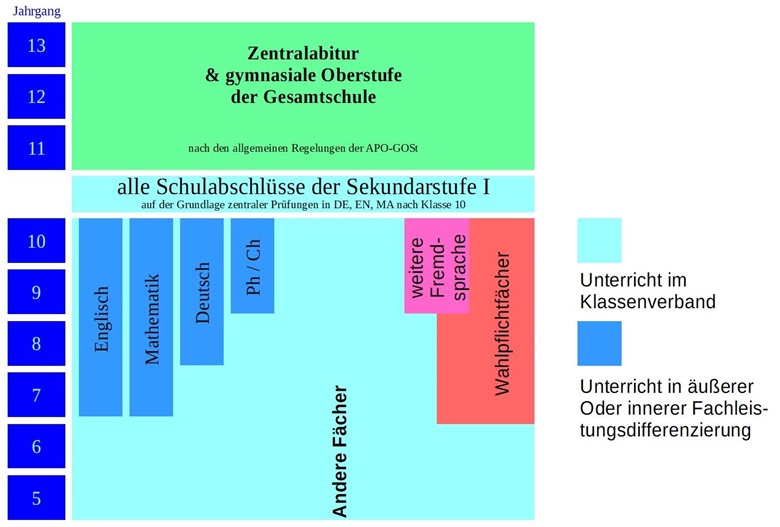 oder in Form der äußeren Differenzierung (Unterricht in E- und G-Kursen) statt.