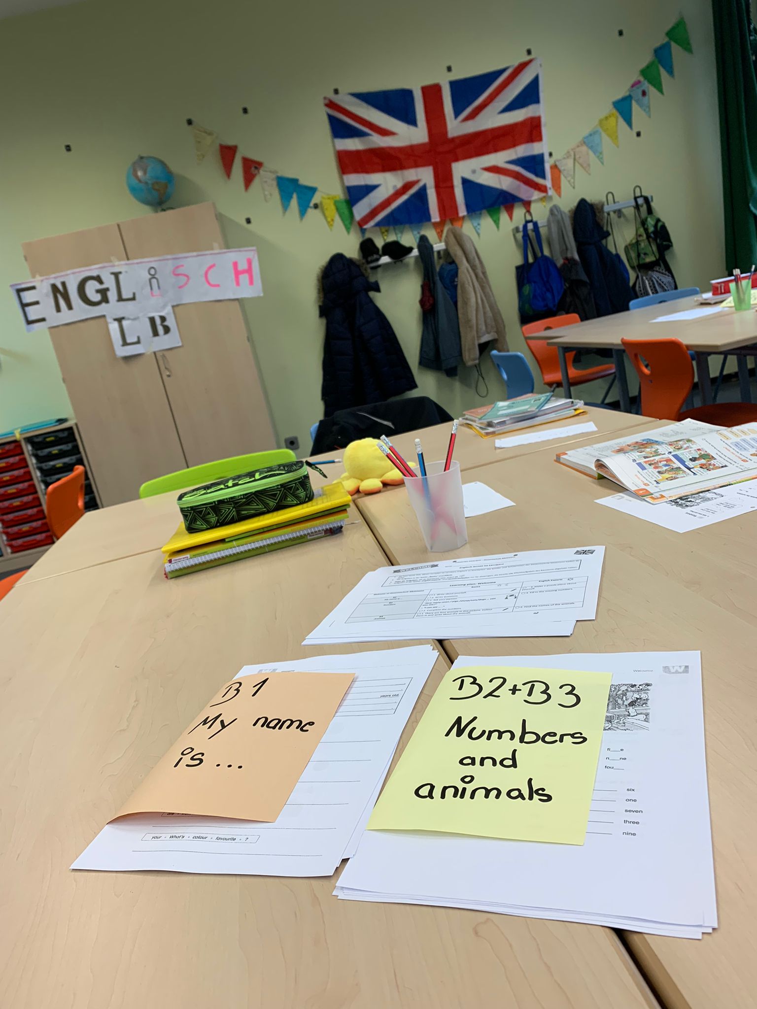 Die ViertklässlerInnen konnten außerdem einen guten Einblick in die Abläufe der Lernbüros gewinnen, die eine elementare Lernmethode der Gesamtschule Mettmann sind. So erhielten sie beispielsweise in Englisch einen vereinfachten Lernplan rund um „Christmas words“. Die FünftklässlerInnen der Gesamtschule Mettmann standen ihnen auch hier mit Rat und Tat zur Seite und zeigten ihnen, was sie bereits gelernt haben.