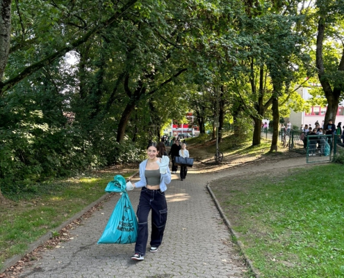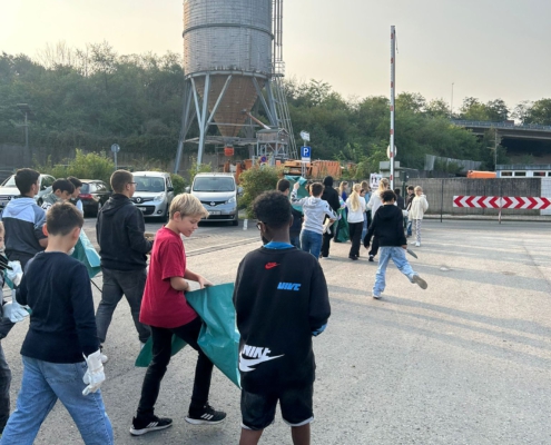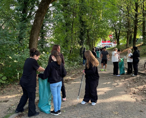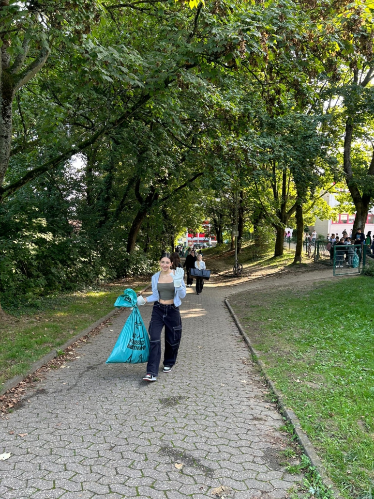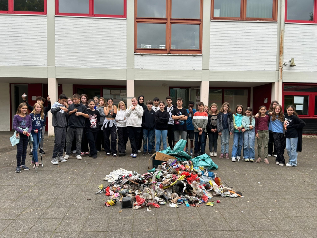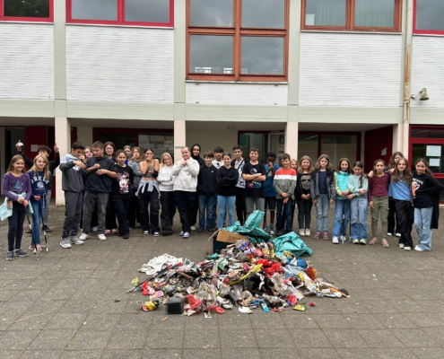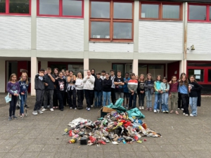Zum Abschluss präsentierten die Schülerinnen und Schüler in der großen Mittagspause den Müllberg als Kunstwerk, um allen sichtbar zu machen, wieviel Müll in der nächsten Umgebung zu finden ist und für einen umweltfreundlicheren Umgang mit Müll zu sensibilisieren.
