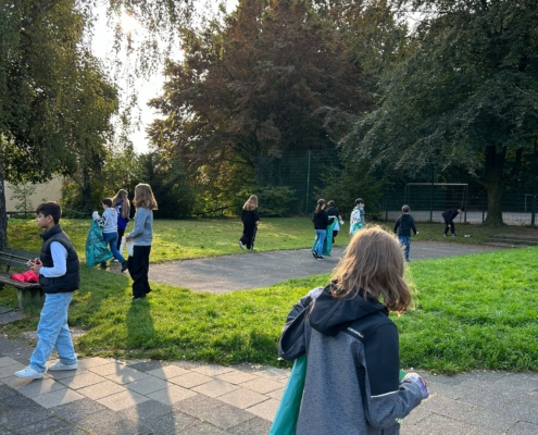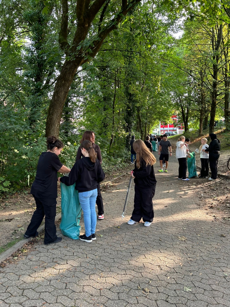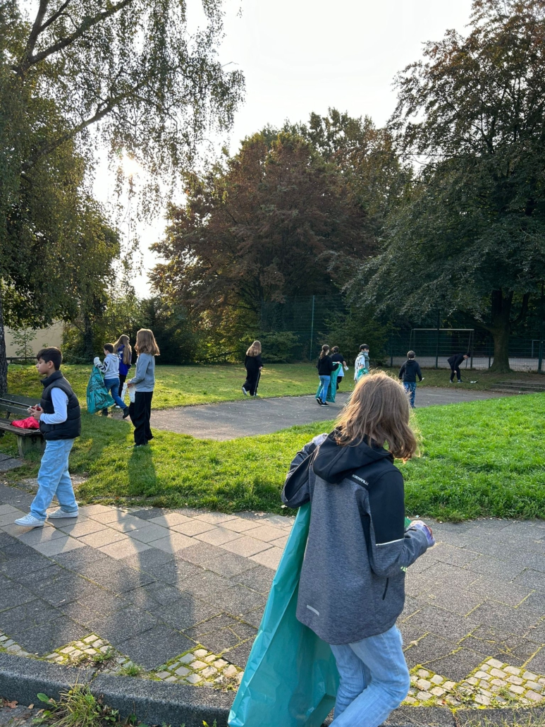 Die Schülervertretung und die Eine-Welt-AG schlossen sich zusammen und kümmerten sich um das weite Gelände um die Schule, wie beispielsweise den Goethepark, die umliegenden Straßen und Gehwege sowie zahlreiche schwer zu erreichende Stellen. Dabei kam ein ganzer Berg an Müll zusammen. Zur Erheiterung und gleichzeitig zum Unglauben führten Funde wie eine Säge, ein Teppich oder ein großer Blumenkasten – allesamt in Büschen im Goethepark und drumherum gefunden.