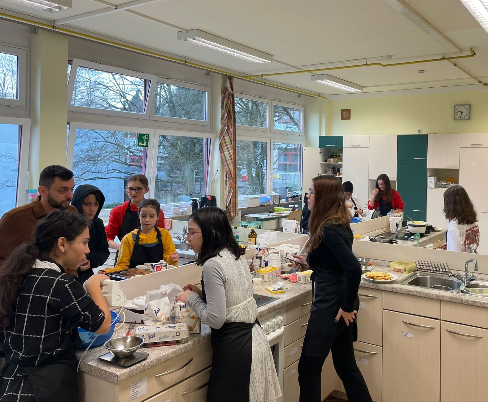 An Altweiber (16.02.23) wurde an der Gesamtschule Mettmann daher nicht nur Karneval gefeiert. Die Schülervertretung (SV) hat eine Spendenaktion ins Leben gerufen, um Geld für die Erdbebenopfer in der Türkei und Syrien zu sammeln. Doch die SV hat sich nicht einfach nur hingestellt und Geld eingesammelt, sondern fleißig den ganzen Tag über Waffeln, Muffins und Kuchen gebacken, gebacken und gebacken … und dann in den Pausen verkauft. Über 10kg Mehl und über 100 Eier wurden im Hauswirtschaftsraum zu Waffeln gezaubert und in den Pausen gegessen.