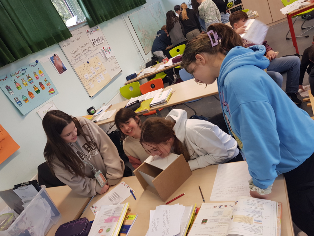 Am Freitag, 28.04.2023 waren zwei Studenten der Uni Wuppertal, die das Projekt “Junior—Uni” begleiten zu Gast an unserer Schule. Nachdem sie sich vorgestellt hatten, zeigten sie uns die Experimente, die wir ausprobieren konnten. Es gab die “Leonardo Da Vinci Brücke”, eine Spiegelschriftbox und ein chemisches Experiment mit Backpulver und Essig. Wir hatten viel Spaß.