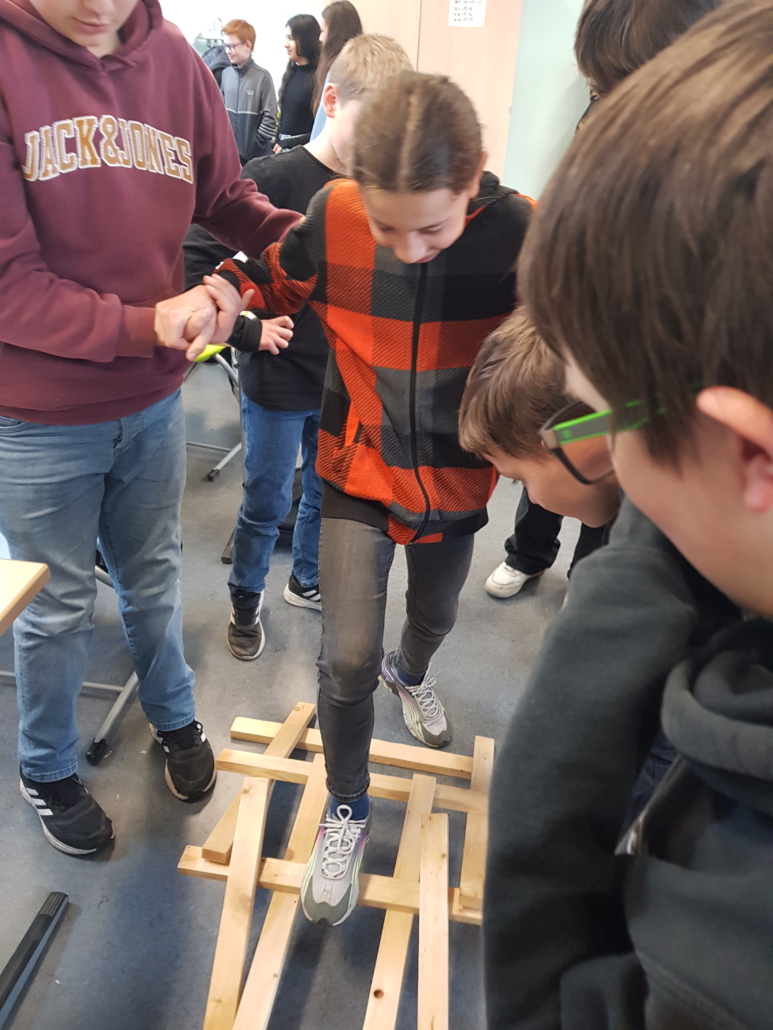 Fünf Schüler aus der 6b haben die Da Vinci Brücke aufgebaut und es geschafft, darüber zu laufen. Bei der Spiegelschriftbox war es lustig zu sehen, dass es sehr schwer ist, nur über einen Spiegel guckend etwas zu schreiben. Beim Chemieexperiment hat sich ein Luftballon durch das Mischen verschiedener Substanzen von alleine aufgepustet. Alle Schulen haben die Möglichkeit, die Junior-Uni Wuppertal für weitere Projekte und Experimente zu besuchen. Dafür müssen die Lehrerinnen und Lehrer ihre Klassen online anmelden.